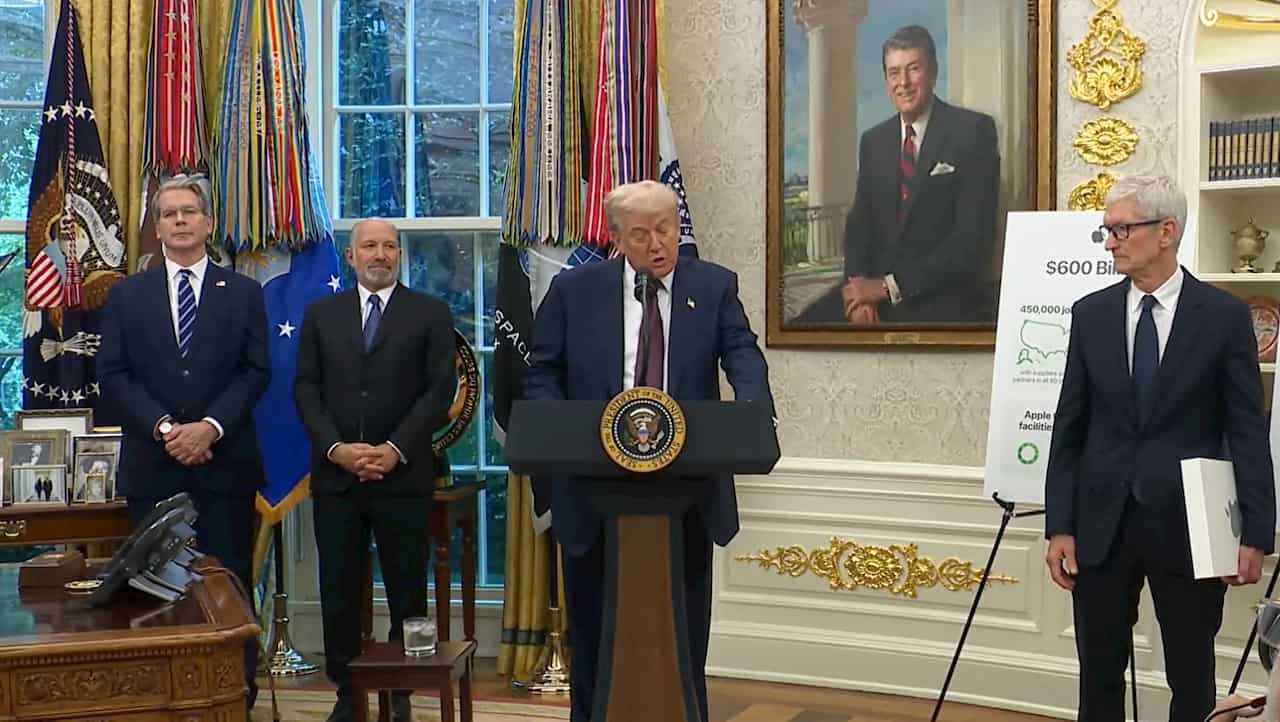 Baltuosiuose rūmuose įvyko JAV prezidento D. Trumpo ir „Apple“ generalinio direktoriaus Timo Cook‘o susitikimas, kurio metu jie aptarė naujus „Apple“ gamybos planus JAV. Didžiausia naujiena – dar papildomos investicijos, plečiant gamybos pajėgumus, tačiau akyliausiems pro akis neprasprūdo ir simbolinė, bet prabangi bendrovės dovana JAV prezidentui.