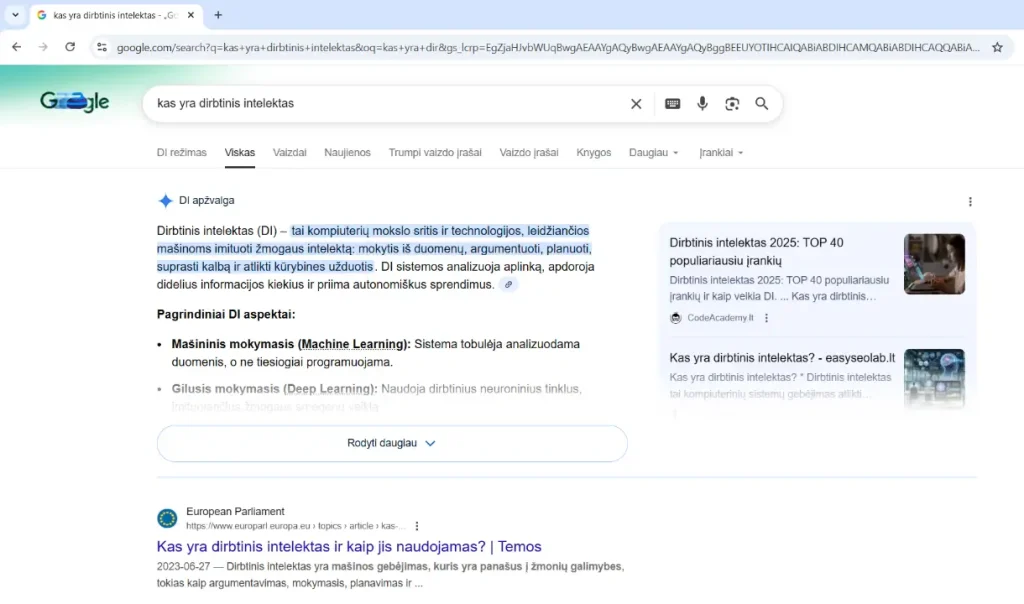 Daugiau šia tema rašėme: Kuriozas: net 39 proc. naudotojų tikrina dirbtinio intelekto atsakymus „Google“ paieškoje