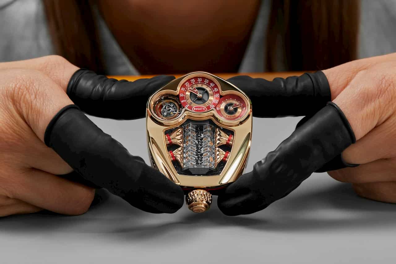Isskirtinis projektas pristatytas naujausias Bugatti Tourbillon laikrodis su miniatiuriniu V16 varikliu