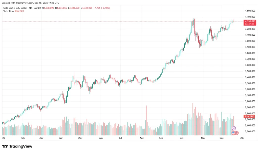 2025 m. auksas fiksavo nuoseklius prieaugius, o spalį – pirmą kartą viršijo 4 000 JAV dolerių už unciją ribą, tačiau pasak JAV investicinio banko „JPMorgan“, aukso kaina, tikėtina, kils ir toliau.