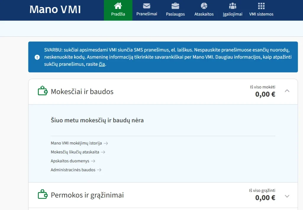 Dažniausiai informacija yra siunčiama paštu, kai asmuo nėra VMI elektroninių paslaugų vartotojas. Bet ji gali pasirodyti gerokai vėliau nei duomenys pateikiami sistemoje. Todėl, esant galimybei, visada rekomenduojama tikrinti elektroninėse platformose – juose vartotojas taip pat gaunas atskirus pranešimus.