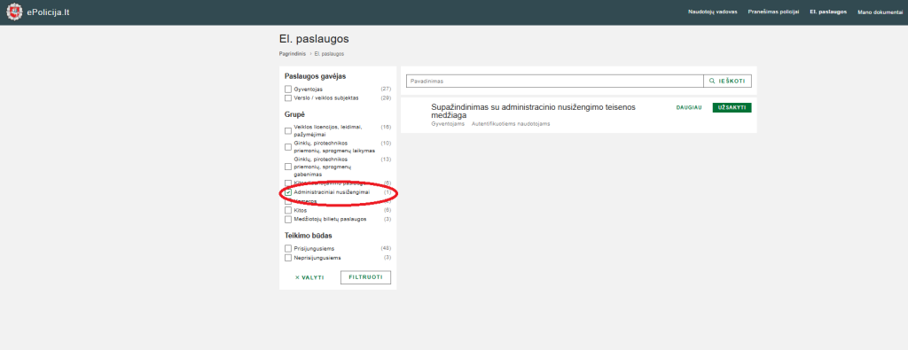 - ePolicija – įprastai rodo dar tik nagrinėjamus pažeidimus.