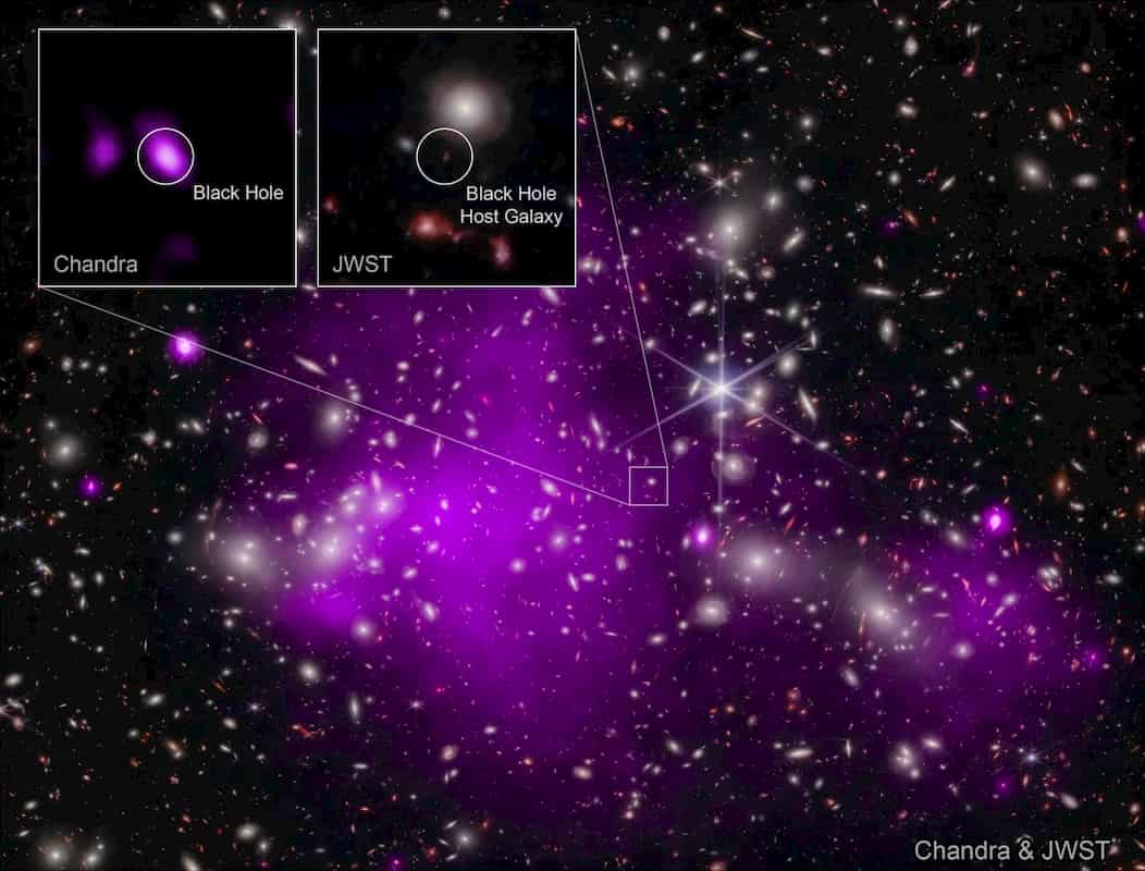 Derindama NASA rentgeno spindulių observatorijos „Chandra“ teleskopo ir NASA kosminio teleskopo „James Webb“ duomenis, tyrėjų grupė sugebėjo rasti požymius, rodančius augančią juodąją skylę, praėjus vos 470 mln. metų po Didžiojo sprogimo.