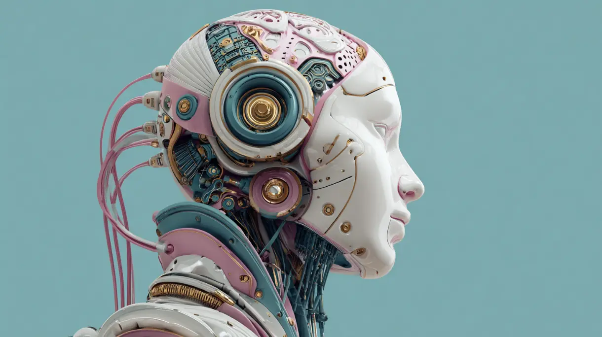 Humanoido iliustracija su matomais mechaniniais elementais.