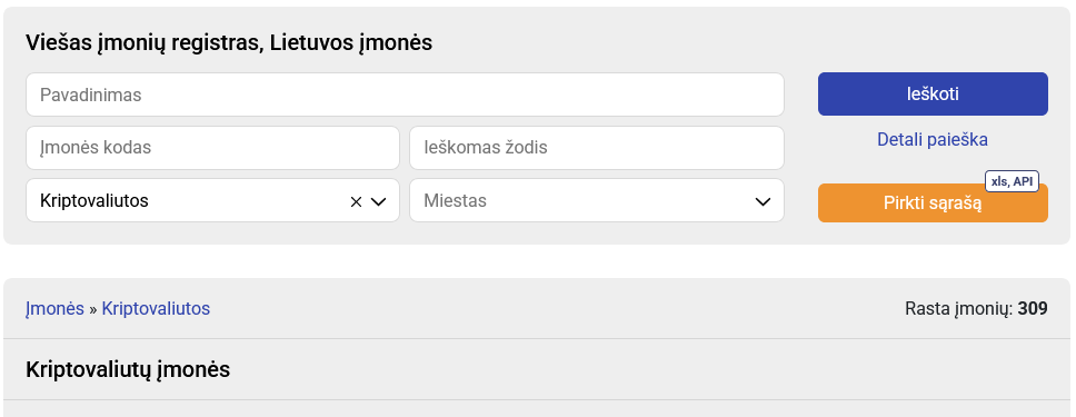 Remiantis rekvizitai.lt duomenimis, šiuo metu viešai rodomos 309 įmonės, vykdančios kriptoturto paslaugų veiklą Lietuvoje.