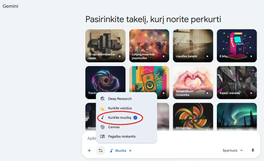 „Google Gemini“ funkcija šiuo metu sugeneruos maždaug trisdešimties sekundžių trukmės kūrinį, o nustebinti gali tai, kad įrankis veikia ne tik anglų, bet ir pakankamai kokybiškai lietuvių kalba.