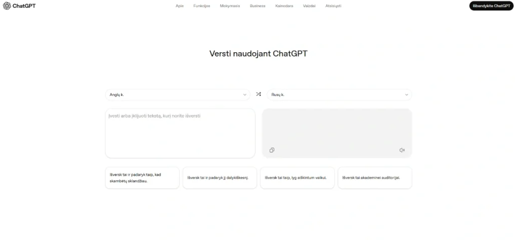 Įrankį galite pasiekti adresu: https://chatgpt.com/lt-LT/translate/