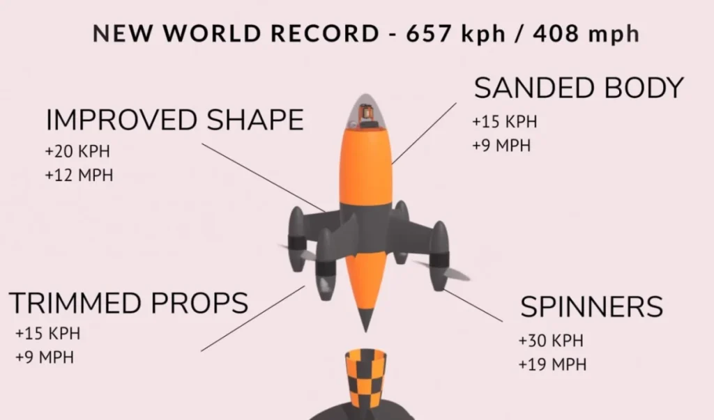 Šie rekordai taikomi elektriniems, sraigtais varomiems dronams – reaktyviniais varikliais varomi kariniai bepiločiai ar fiksuoto sparno orlaiviai gali išvystyti dar didesnį greitį.