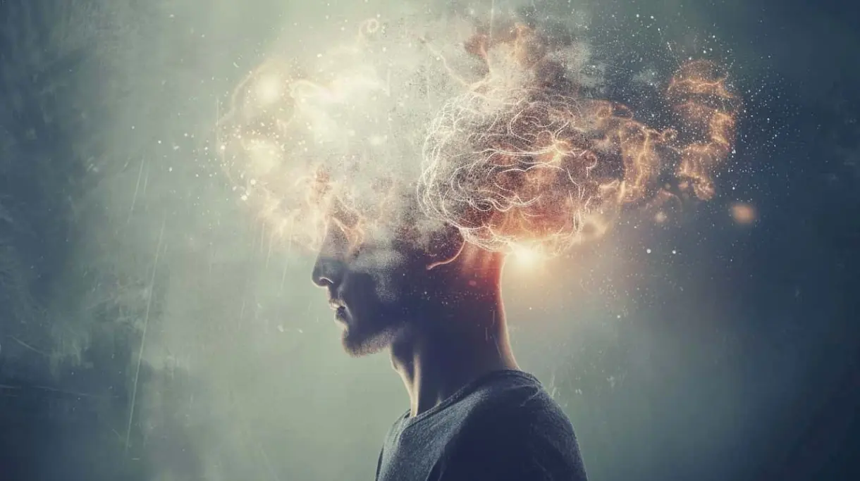 Vyro profilis su vizualizuotais švytinčiais smegenų tinklais. Šaltinis: TechNaujienos