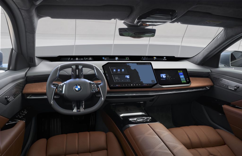 Kaip ir kituose naujuose BMW modeliuose, „BMW 7“ turės per visą priekinę panelę besitęsiantį ekraną „BMW Panoramic Vision“ bei į vairuotoją orientuotą centrinį ekraną. Tačiau tai – dar ne viskas.