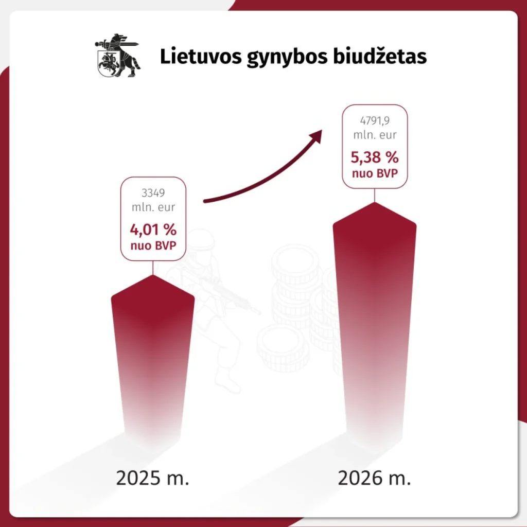 2026 metų gynybos biudžetas, lyginant su 2025 metais, didėja 43 proc. – nuo 3,35 mlrd. iki 4,79 mlrd. eurų. Pagal planuojamą bendrojo vidaus produkto dalį Lietuva tampa viena daugiausiai į gynybą investuojančių NATO valstybių. Šis sprendimas priimtas atsižvelgiant į pasikeitusią regioninio saugumo situaciją ir ilgalaikius įsipareigojimus kolektyvinei gynybai.