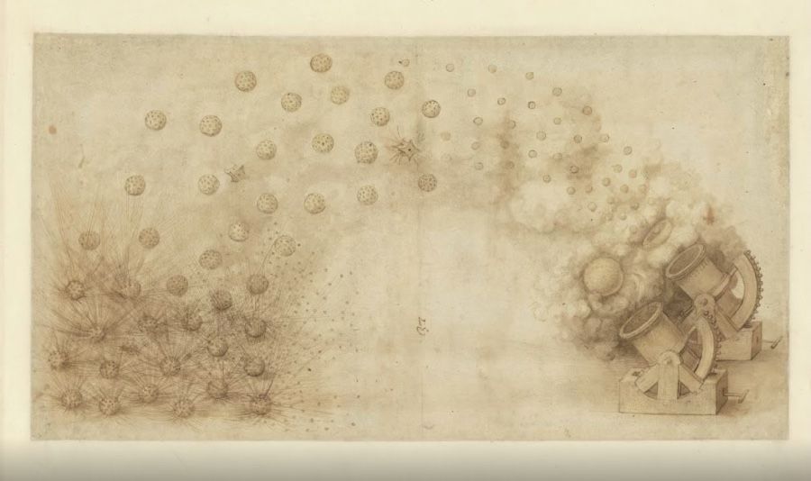 Jo užrašai taip pat atskleidžia garsųjį laišką Milano kunigaikščiui, kuriame devyniais punktais jis pristatė savo kvalifikacijas karininko inžinieriaus pareigoms. Viename punkte jis detalizuoja patogias transportuojamas bombas, kurios galėtų mesti akmenis per dūmais prisotintą audrą, gąsdindamos priešą ir sukeldamos sumaištį.