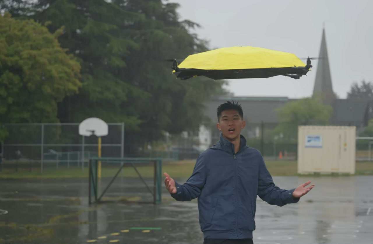 „YouTube“ kūrėjas Johnas Xu šį mėnesį tam pasiūlė unikalų sprendimą – skraidantį skėtį, kuris jus seka visur.