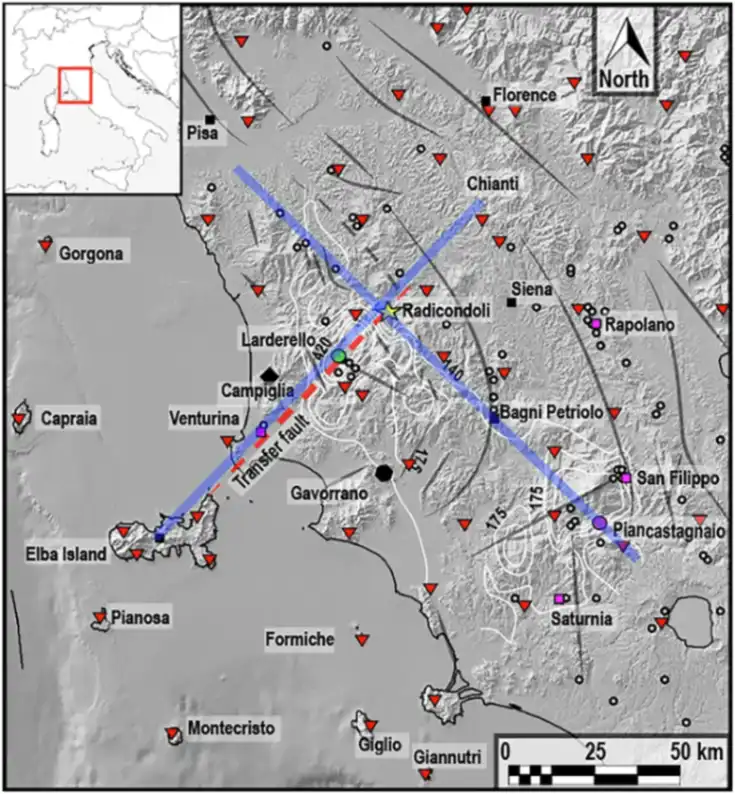 Italijos mokslininkai, remdamiesi seisminiais duomenimis, geologinių pjūvių analize ir sudarę 3D modelį, nustatė didelį magmos kiekį vidurinėje Žemės plutos dalyje po Toskanos regionu. Tyrėjų teigimu, šis rezervuaras yra susijęs su Larderello geotermine zona – viena seniausių pasaulyje geoterminės energijos vietų.